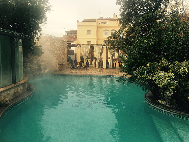 Posibilidad de disfrutar de la piscina termal interior-exterior del hotel Termes.